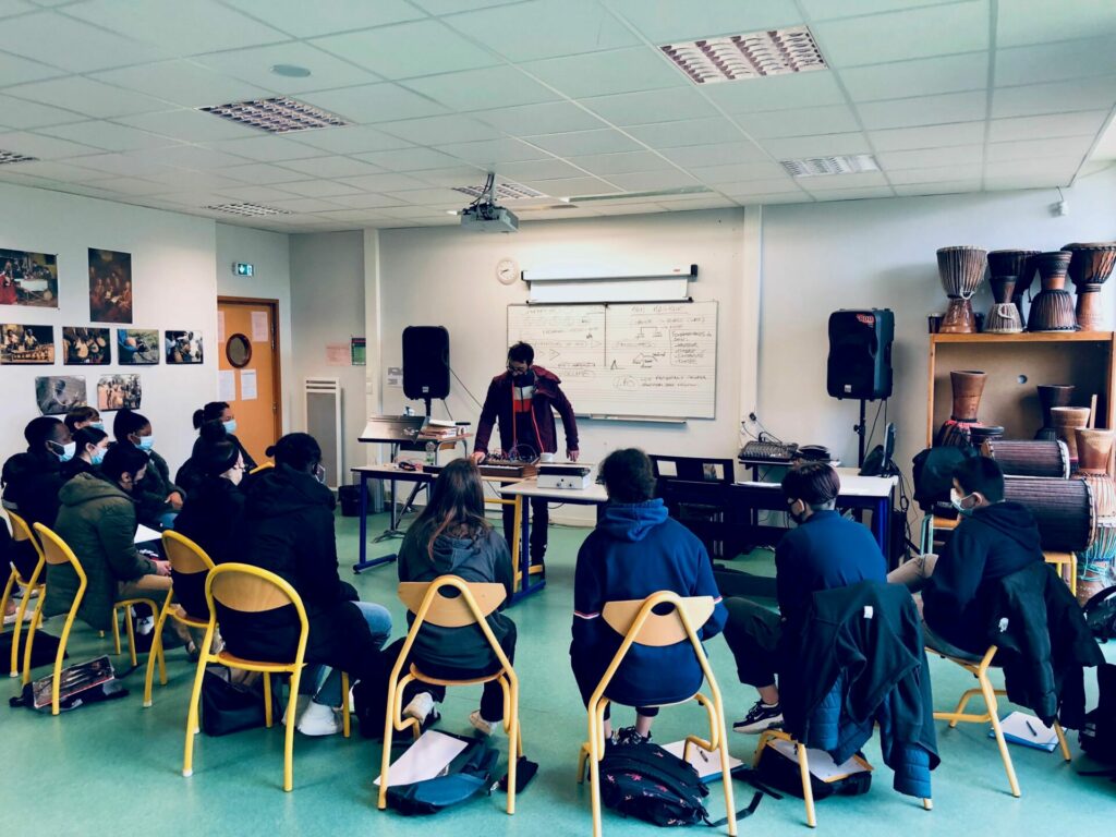 Les élèves sont amenés à écouter et travailler le son comme matériau, à créer une scénographie pour présenter leurs œuvres collaboratives au public en réalisant des installations numériques in situ, véritables hybridations entre