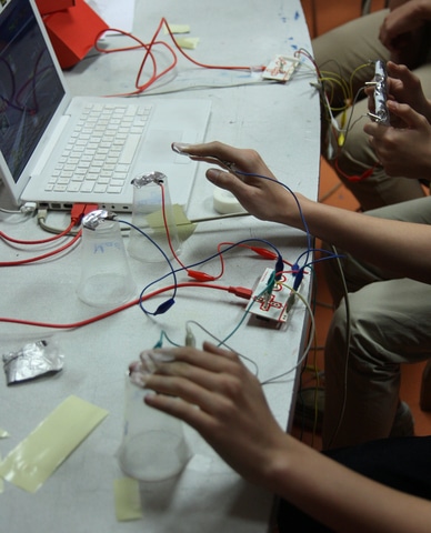 Makey Makey prend le parti d’interfacer n’importe quel élément de votre environnement et de le transformer en outil susceptible de communiquer avec votre ordinateur.